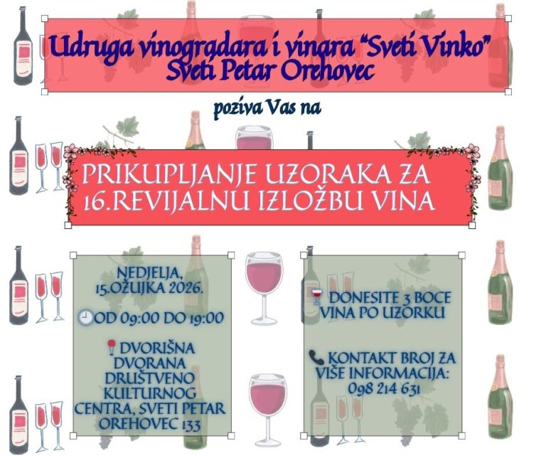 Udruga vinogradara i vinara „Sveti Vinko“ i Općina Sveti Petar Orehovec pozivaju vas na tradicionalnu proslavu blagdana Vincekova, koja će